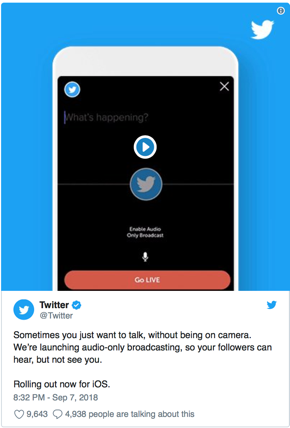Twitter launches audio-only broadcast